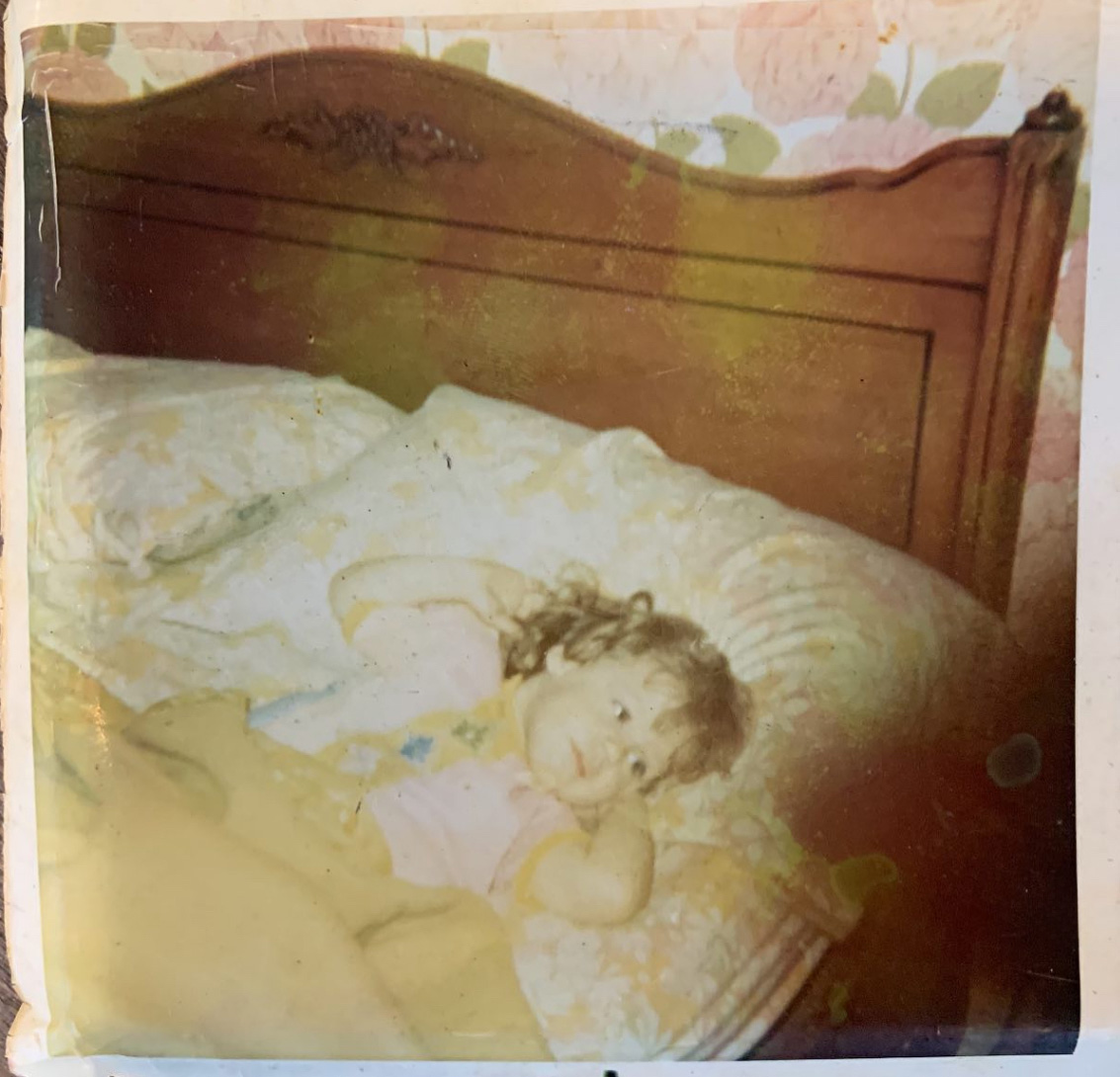 My childhood was anything but conventional and there weren’t many photos of me to document said upbringing. But on that morning walk, I immediately thought of a rare picture I had of little me laying in bed all comfy cozy. In fact, I started scrolling through my phone as we walked to see if I could find it.